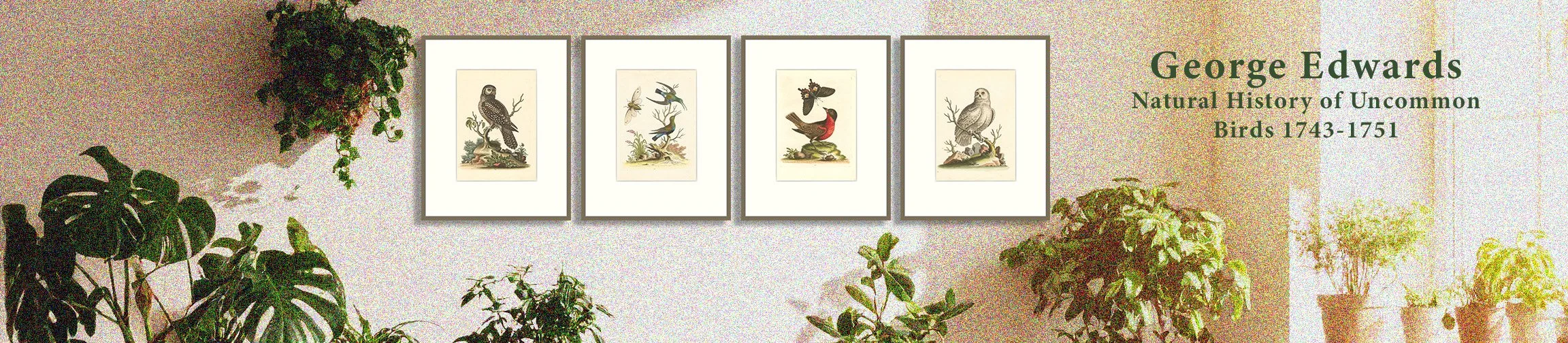 Reproduced from original hand colored engravings from George Edwards “Natural History of Uncommon Birds, 1743)” the prints are inkjet printed and conservation matted ready for framing.
